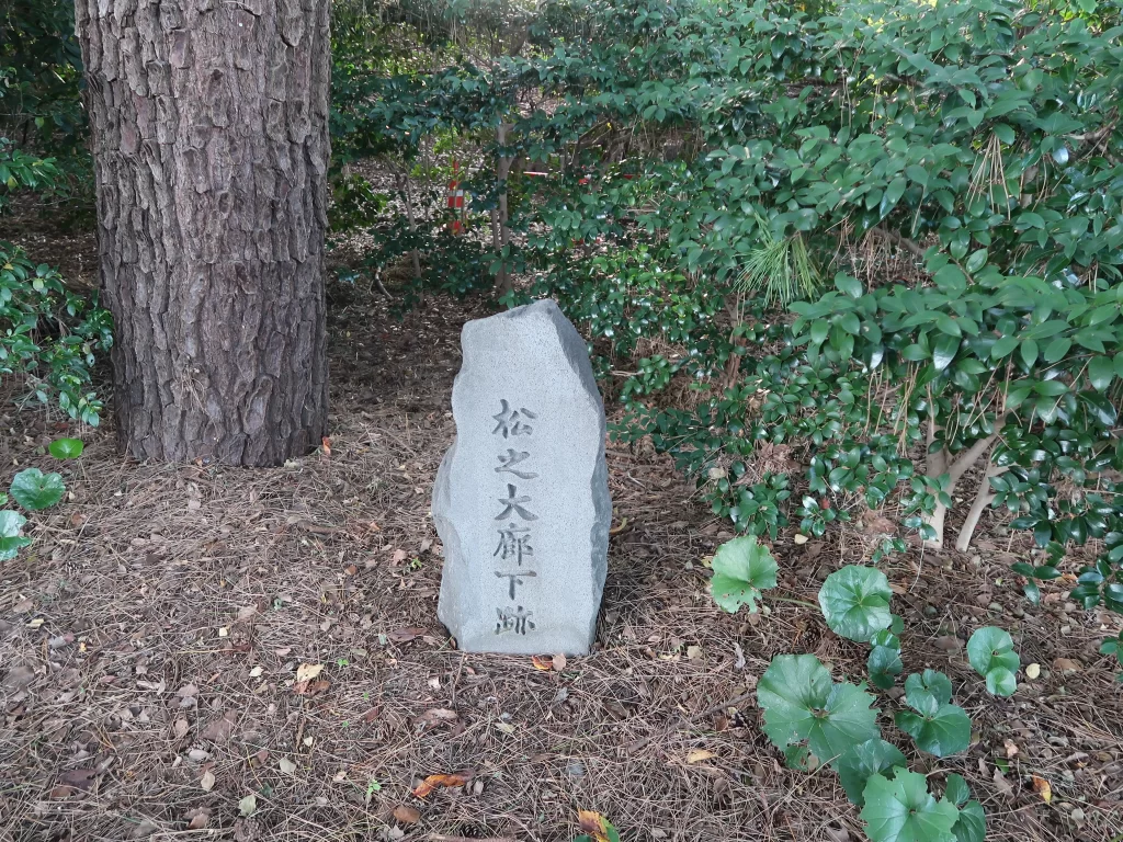 The site of the “Pine Corridor” (Matsu no Rōka), a long corridor that once stood within Edo Castle, is located in the East Gardens of the Imperial Palace.