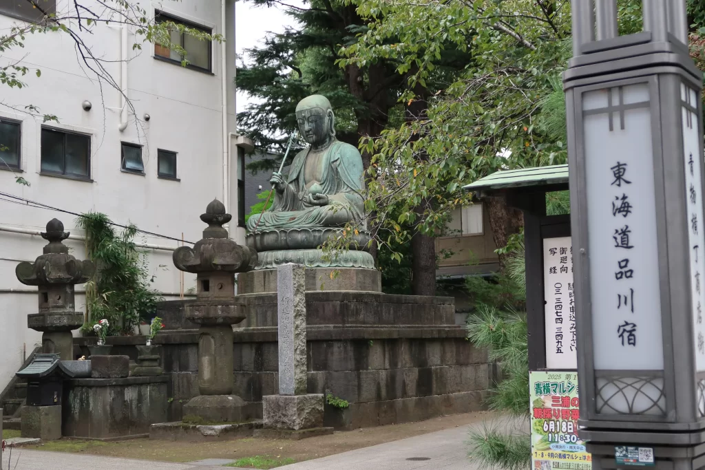 This is the Jizo Bosatsu statue at Honsenji Temple in Shinagawa-juku, the first post town along the Tokaido Road. The temple stands quietly within the shopping district. Stepping into the precincts, a solemn atmosphere envelops the surroundings, creating a feeling of deep reverence. I paid my respects here, imagining the scene from that era when travelers with various purposes set out on their journeys, praying for safe passage at this starting point. Travel back then was primarily on foot, making the hardships immeasurable. It’s easy to imagine people losing their lives or falling ill along the way. Praying for safety on such a harsh journey was surely a common practice in those days.