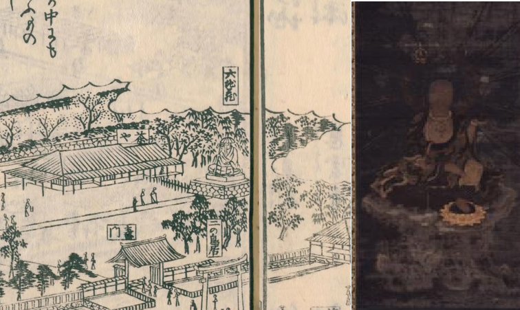 The sixth Jizō Bosatsu of the Edo Rokujizō, unfortunately, was destroyed when Eitai-ji Temple was abolished under the Shinto-Buddhist Separation Edict in the early Meiji period. The illustration on the left above depicts the Jizō Bosatsu at Tomioka Hachimangu Shrine at that time. The illustration also notes “Six Jizō.” The image on the right depicts a half-seated Jizō Bosatsu painted on silk with color. It is deeply regrettable that only the Six Jizō were destroyed. Yet, amidst the significant shift in attitudes toward Buddhism during that era and the many events that occurred, I am grateful that so many temples and shrines have survived to the present day, continuing to offer solace to countless people.
