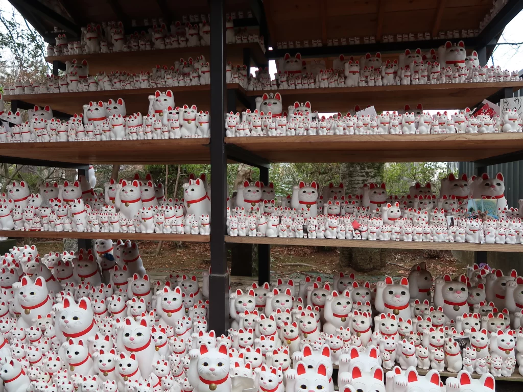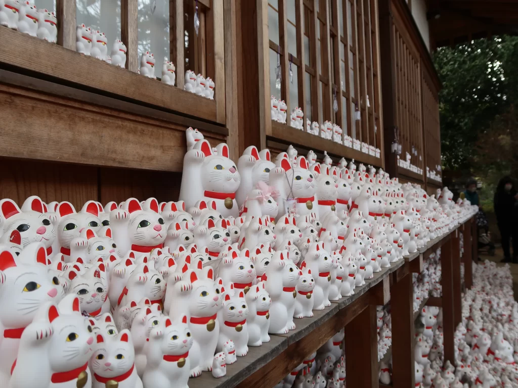 Visitors often bring maneki-neko statues back to the temple after their wishes come true and dedicate them there as a gesture of gratitude. This is why rows of lucky cats line the grounds.