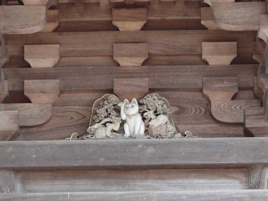 Take a closer look at the three-story pagoda and you’ll find a cute Manekineko(beckoning cat). There are also Eto(zodiac animal) carvings, so try finding your own Eto(zodiac animal) sign. The Eto(zodiac) is unique to the Asian region and is also common in Japan. It operates on a 12-year cycle, and the Eto(zodiac animal) assigned to the year of one’s birth becomes their personal guardian deity. Most Japanese people are conscious of their Eto(zodiac animal), and every 12 years, when their Eto(zodiac animal) year arrives, they are considered the “man of the year” or “woman of the year.” Incidentally, there is no Cat Year. Although cats are considered the natural enemy of mice in Japan, the cat and mouse on the three-storied pagoda appear to be playing together amicably.
