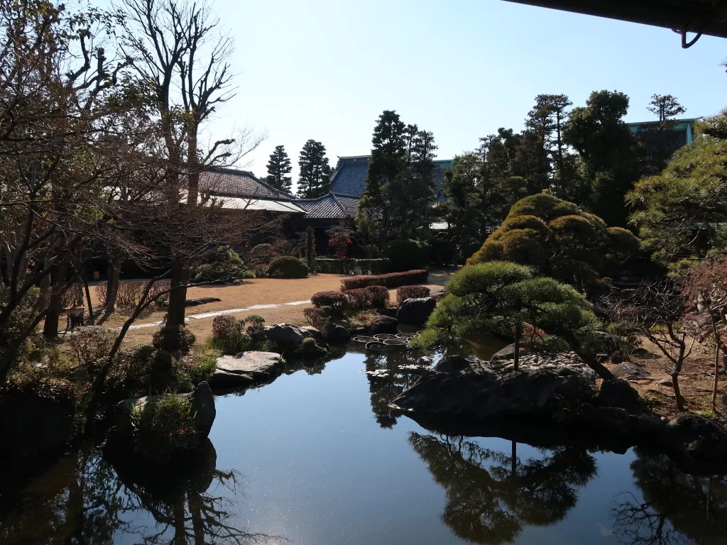 • A peaceful traditional garden behind the main hall