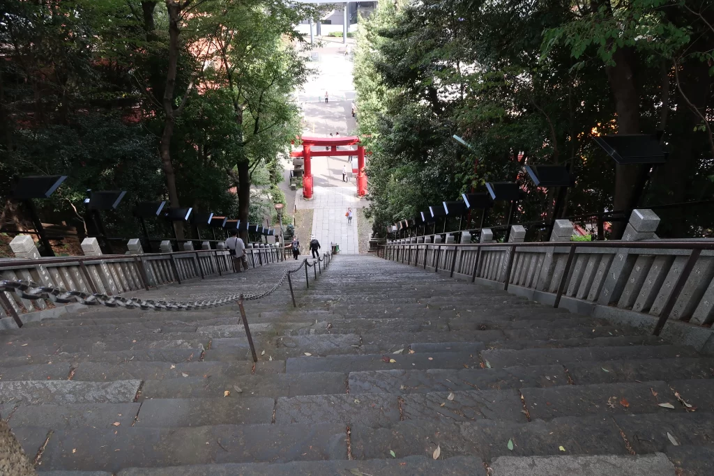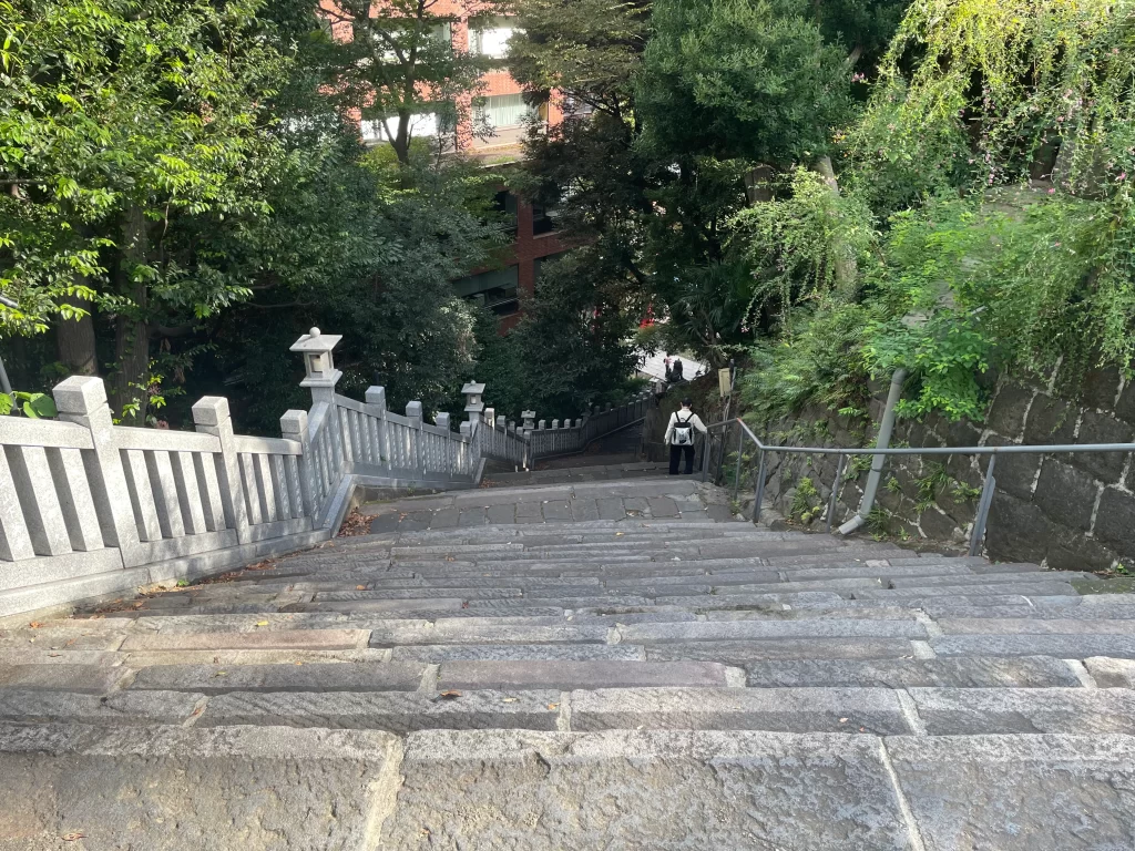 On the front side of Atago Jinja(OTOKOZAKA) the steps are long and steep.